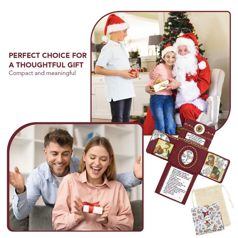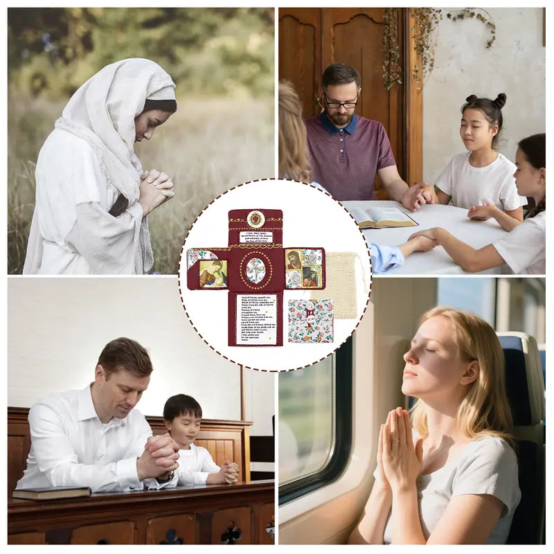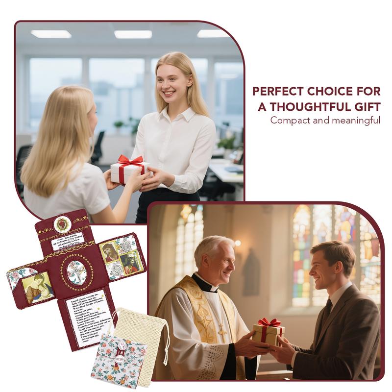 This prayer pocket makes a thoughtful gift for anyone facing illness, loneliness, or spiritual dryness. The deep red fabric symbolizes Christ’s love, while the set itself becomes a tangible reminder that they are not alone. Ideal for Christmas, Easter, First Communion, Confirmation, baptism anniversaries, or simply to whisper: “God is with you.”